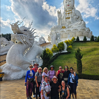 It is difficult to fully capture the beauty and depth of this experience—it was one of the most all-encompassing trips I have ever taken. In Chiang Rai, we explored breathtaking temples, including the iconic White Temple, symbolizing heaven, and the striking Blue Temple, known as the People’s Temple. We also visited the intriguing Black House, representing hell—a powerful and thought-provoking reminder to live well.